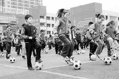 ?寶豐縣中興路小學學生在課間踢足球。 寶豐縣教體局供圖