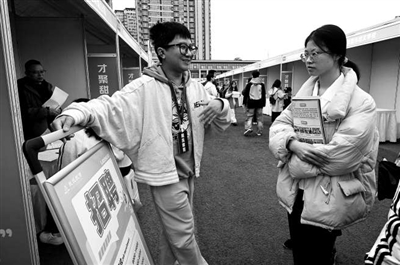 學(xué)生向企業(yè)工作人員了解信息。