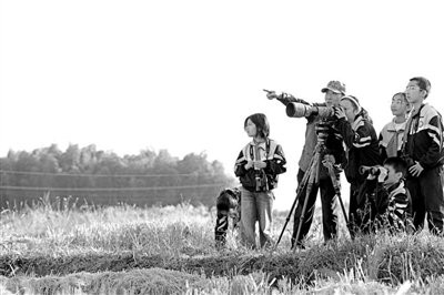 近日,茅坦小學(xué)學(xué)生在野生鳥類保護(hù)志愿者的帶領(lǐng)下用相機(jī)記錄鳥類。