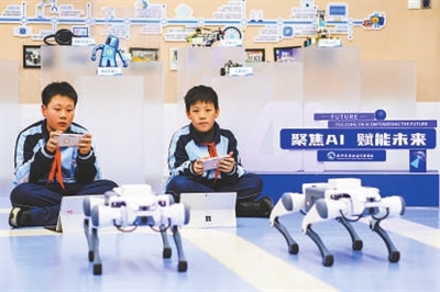 12月2日,杭州市保俶塔實(shí)驗(yàn)學(xué)校的學(xué)生們在人工智能通識課上學(xué)習(xí)如何給機(jī)器狗編程。