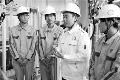 長(zhǎng)春汽車職業(yè)技術(shù)大學(xué)優(yōu)秀校友、全國(guó)人大代表?xiàng)钣佬蓿ㄓ遥┰谛V袕S開(kāi)展現(xiàn)場(chǎng)教學(xué)。