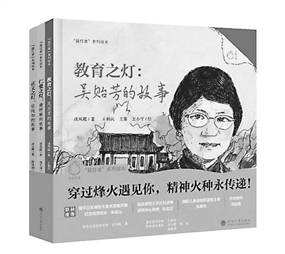 細心的讀者會發(fā)現(xiàn):吳貽芳、魏特琳、張純?nèi)绻适碌娜齻€繪本封面底部的波浪相連、綿延不絕,象征她們的高尚情操薪火相繼。“穿過烽火遇見你,精神火種永傳遞”——這是“提燈者”系列繪本的一個創(chuàng)作宗旨,希望這套講述三位女性個人奮斗與家國命運的傳記故事繪本,能喚起人們的歷史記憶,點燃人生理想和志向。讓我們一起守護不朽的正義信念,共同祈愿人間安康,維護世界和平。