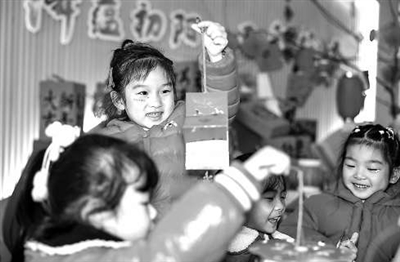 12月23日,貴州省玉屏侗族自治縣第五幼兒園的小朋友在做燈籠。胡攀學(xué) 攝