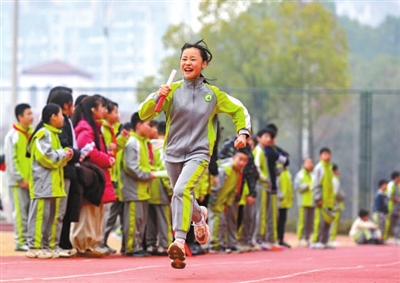 近日,湖南省長(zhǎng)沙市開(kāi)福區(qū)新竹第二小學(xué)開(kāi)展“雋園歡騰慶元旦 騏驥昂首啟新程”活動(dòng)。圖為學(xué)生在進(jìn)行班級(jí)接力賽跑。郭立亮 攝