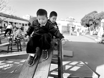 孩子們?cè)趹敉庥螒騾^(qū)自主游戲。施俊霞 供圖