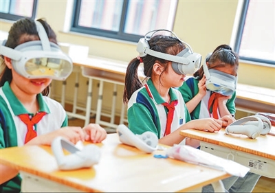 在上海市宋校嘉定實驗學(xué)校科技節(jié)的“科普游園”活動中,學(xué)生正在參加“3D虛擬視界”項目。學(xué)校供圖