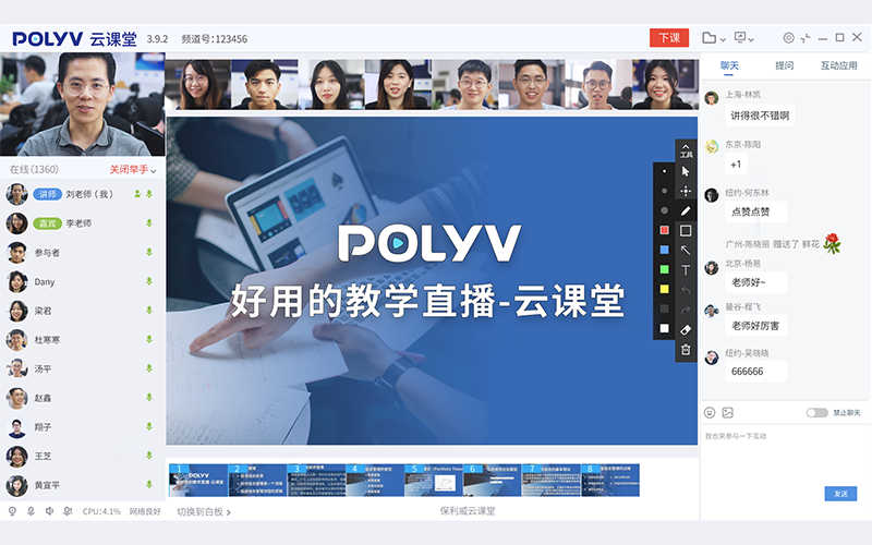 保利威“云課堂”教學(xué)直播界面