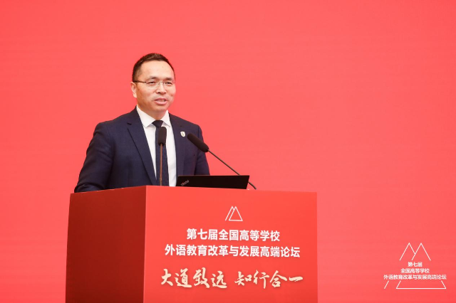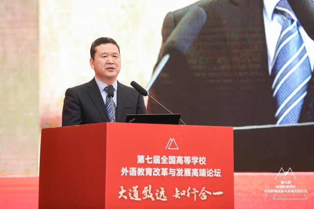 3月25-26日,第七屆全國高等學(xué)校外語教育改革與發(fā)展高端論壇在北京舉辦。論壇主題為“大道致遠(yuǎn),知行合一”。中宣部領(lǐng)導(dǎo)、教育部領(lǐng)導(dǎo)、教指委專家及2000余位高等外語教育界專家學(xué)者齊聚北京,16萬高等外語教育同仁云端參會,以黨的二十大精神為指引,共探外語教育現(xiàn)代化建設(shè)新路徑,共繪外語教育高質(zhì)量發(fā)展新華章。