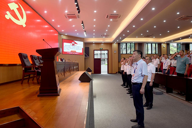 校長朱云富帶領(lǐng)全體黨員面對(duì)黨旗宣誓