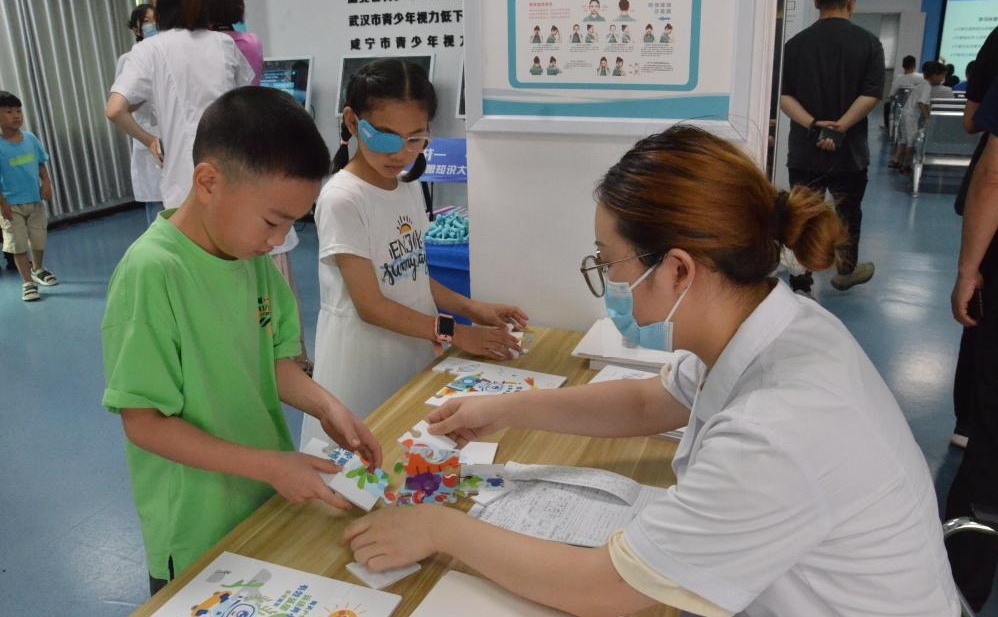 學(xué)生在咸寧視防做健眼小游戲