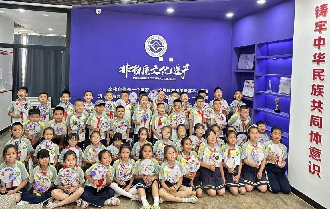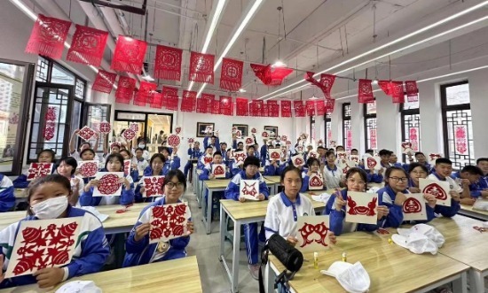 在研學(xué)基地,學(xué)生們先后學(xué)習(xí)了剪紙、團(tuán)扇、皮雕、糖人糖畫、扎染、活字印刷等傳統(tǒng)工藝品的制作方法,重拾傳統(tǒng)技藝,領(lǐng)略手工之美,感受中國(guó)傳統(tǒng)手工藝的魅力。