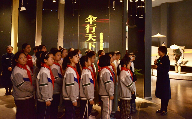 活動(dòng)上,杭州市青藍(lán)青華實(shí)驗(yàn)小學(xué)和蕭山區(qū)南陽(yáng)小學(xué)的學(xué)生,在博物館講解員的帶領(lǐng)下參觀(guān)了館內(nèi)展覽,對(duì)傘的發(fā)展歷史有了更深入的了解,對(duì)傘的制作過(guò)程也產(chǎn)生了濃厚的興趣。