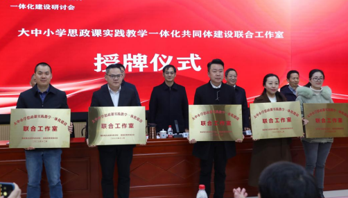 會上,相關負責同志為大中小學思政課實踐教學一體化共同體建設聯合工作室舉行了授牌儀式。聯合工作室成員單位重慶電力高等專科學校、潼南區(qū)實驗中學、潼南區(qū)雙江中學、潼南區(qū)人民小學、楊闇公楊尚昆舊居陳列館代表接牌。
