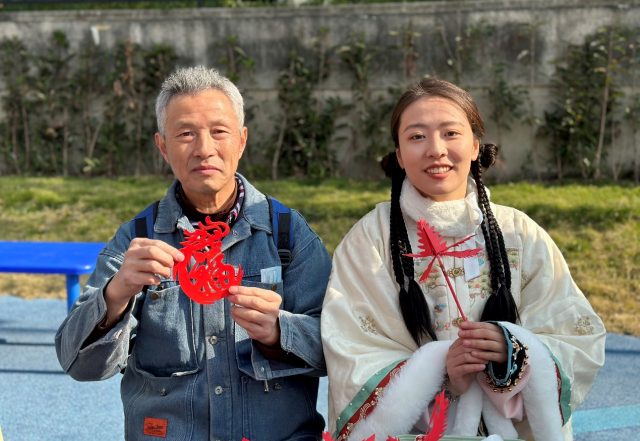 剪紙大師翁士熊(左)