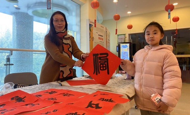 為了增加活動(dòng)的趣味性,現(xiàn)場(chǎng)還設(shè)置了游戲互動(dòng)區(qū),孩子們?cè)诮涣鞯耐瑫r(shí)能夠更好地體驗(yàn)“趕大集”的歡樂氛圍。此外,現(xiàn)場(chǎng)還舉辦了一場(chǎng)溫馨而有年味的“送福”活動(dòng)——“揮毫潑墨,送春聯(lián)”,特別邀請(qǐng)老藝術(shù)家們現(xiàn)場(chǎng)書寫春聯(lián),為新的一年送上祝福。