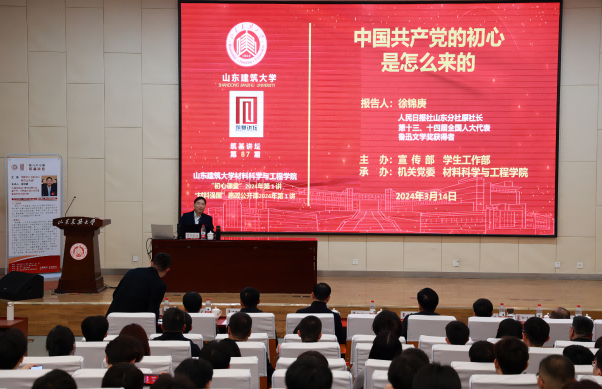 3月14日,長篇報告文學(xué)《望道:〈共產(chǎn)黨宣言〉首部中文全譯本的前世今生》(簡稱《望道》)作者徐錦庚,應(yīng)邀做客山東建筑大學(xué)第87期“筑基講壇”,以“中國共產(chǎn)黨的初心是怎么來的”為題,帶領(lǐng)學(xué)校學(xué)生穿越時空,觀看人類思想史上一次“壯麗的日出”。