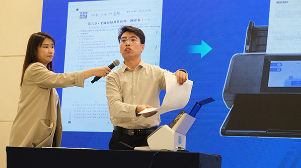 發(fā)布會(huì)上,眾望教育集團(tuán)總經(jīng)理?xiàng)钗谋蚪榻B了即將上市的兩大新產(chǎn)品——數(shù)據(jù)大模型測(cè)評(píng)卷與校本數(shù)字教輔。