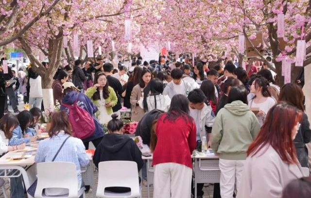 近日,陜西省西京學(xué)院舉辦了第五屆櫻花節(jié)。櫻花樹(shù)下,學(xué)生三五成群,或駐足觀賞,或拍照留念。校園內(nèi)櫻花爛漫,與學(xué)子們的青春活力交相輝映,構(gòu)成了一幅美麗的畫卷。