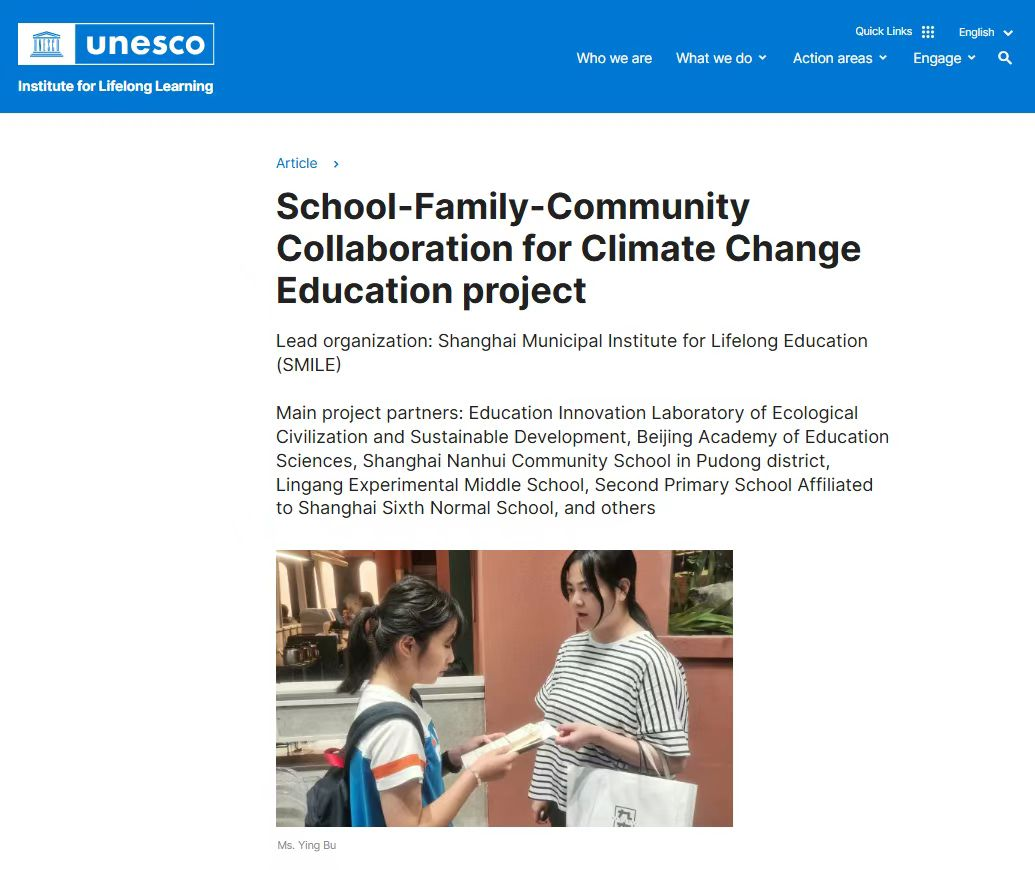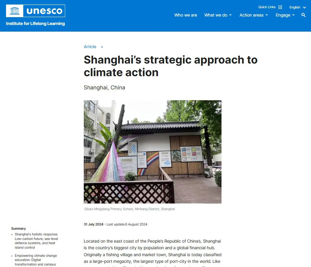 近日,聯(lián)合國(guó)教科文組織終身學(xué)習(xí)研究所官網(wǎng)面向全球發(fā)布了上海開(kāi)展氣候變化教育的創(chuàng)新成果。