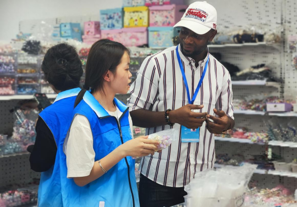 播勇者團(tuán)隊成員給留學(xué)生介紹選品技巧