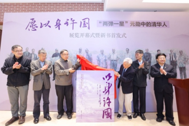 隨后,該書主編人員與清華大學(xué)相關(guān)領(lǐng)導(dǎo)、專家等共同為《以身許國——“兩彈一星”元?jiǎng)字械那迦A人》一書首發(fā)揭幕。