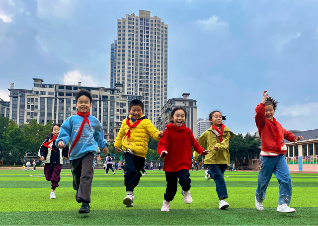 延續(xù)了幾十年的“課間10分鐘”能增長嗎?課間時間增加5分鐘能帶來什么變化?重慶市永川區(qū)興龍湖小學(xué)給出了答案。從2024年9月起,重慶市永川區(qū)興龍湖小學(xué)推行“多彩小課間”活動,以“優(yōu)化課間15分鐘”“每天開設(shè)一節(jié)體育課”等為改革突破口,率先實施“加長版”課間,在多出來的課間5分鐘里下足了功夫。
