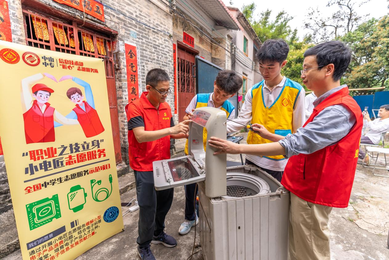 學(xué)校開展“小電匠”志愿服務(wù)項(xiàng)目,師生為街坊維修小家電,以學(xué)生專業(yè)技能開展志愿服務(wù)。
