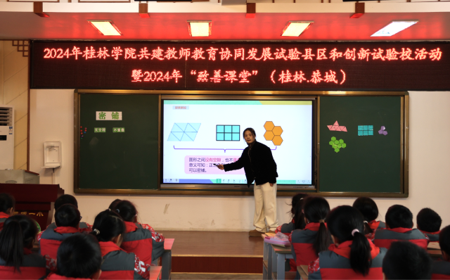 近日,“致善課堂”活動(dòng)在廣西壯族自治區(qū)恭城瑤族自治縣第一小學(xué)開(kāi)展活動(dòng),近200位小學(xué)數(shù)學(xué)教育領(lǐng)域的專家學(xué)者和來(lái)自廣西各地市的鄉(xiāng)村教師代表,參加了該活動(dòng)的觀摩學(xué)習(xí)交流。“致善課堂”是桂林學(xué)院和桂林市教育科學(xué)研究所共同搭建的、引領(lǐng)鄉(xiāng)村小學(xué)教師專業(yè)發(fā)展的教學(xué)研究與展示平臺(tái)。
