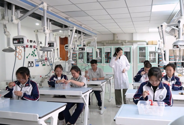 學(xué)生在智能實驗室參與化學(xué)實驗
