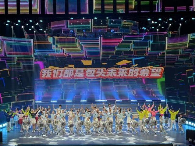原創(chuàng)情景音樂劇《希望》作為 2025年包頭市春晚唯一以青少年為主題的節(jié)目,意義非凡。藝術(shù)團的孩子們將音樂劇中的說唱、領(lǐng)唱、重唱、舞蹈等表演形式在舞臺上有機融合,將包頭市工業(yè)城市稀土元素和課堂豐富的授課形式相結(jié)合,對劇情進行了完美演繹。