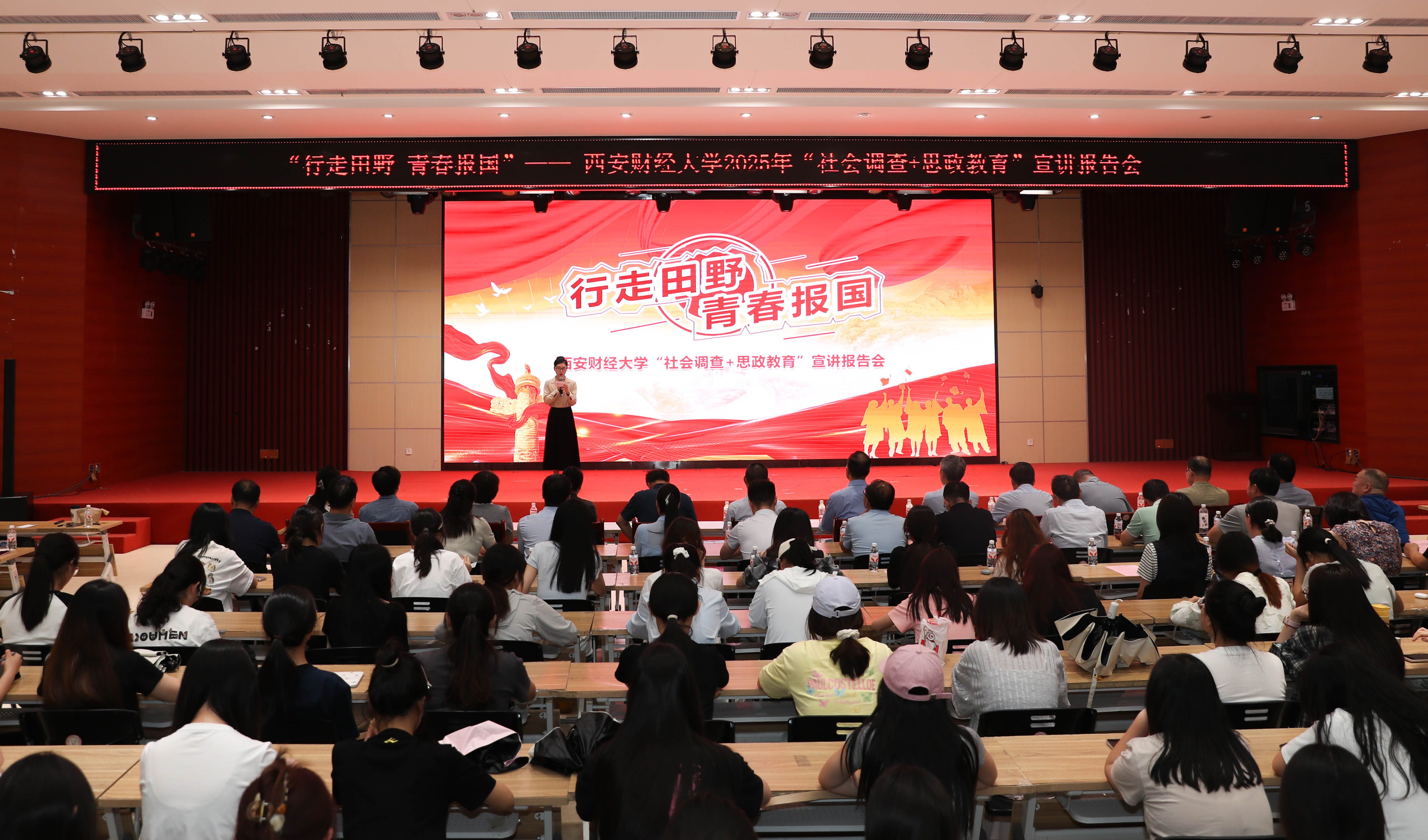 5月28日,“行走田野 青春報(bào)國(guó)”西安財(cái)經(jīng)大學(xué)2025年“社會(huì)調(diào)查+思政教育”宣講報(bào)告會(huì),在該校大學(xué)生活動(dòng)中心舉行。校領(lǐng)導(dǎo)、校黨委理論學(xué)習(xí)中心組成員、教務(wù)處負(fù)責(zé)人、各學(xué)院(部)書記和部分師生代表,參加了此次活動(dòng)。