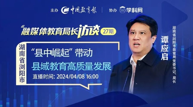 歷經(jīng)20多年,蹚出了縣中崛起的“瀏陽路徑”,而優(yōu)質(zhì)教育也成為了瀏陽的閃亮名片。本期,我們就邀請(qǐng)到了湖南瀏陽市教育局局長(zhǎng)譚應(yīng)啟做客《中國(guó)教育報(bào)》融媒體教育局長(zhǎng)訪談直播間,與大家分享瀏陽市教育高質(zhì)量發(fā)展的探索與實(shí)踐!