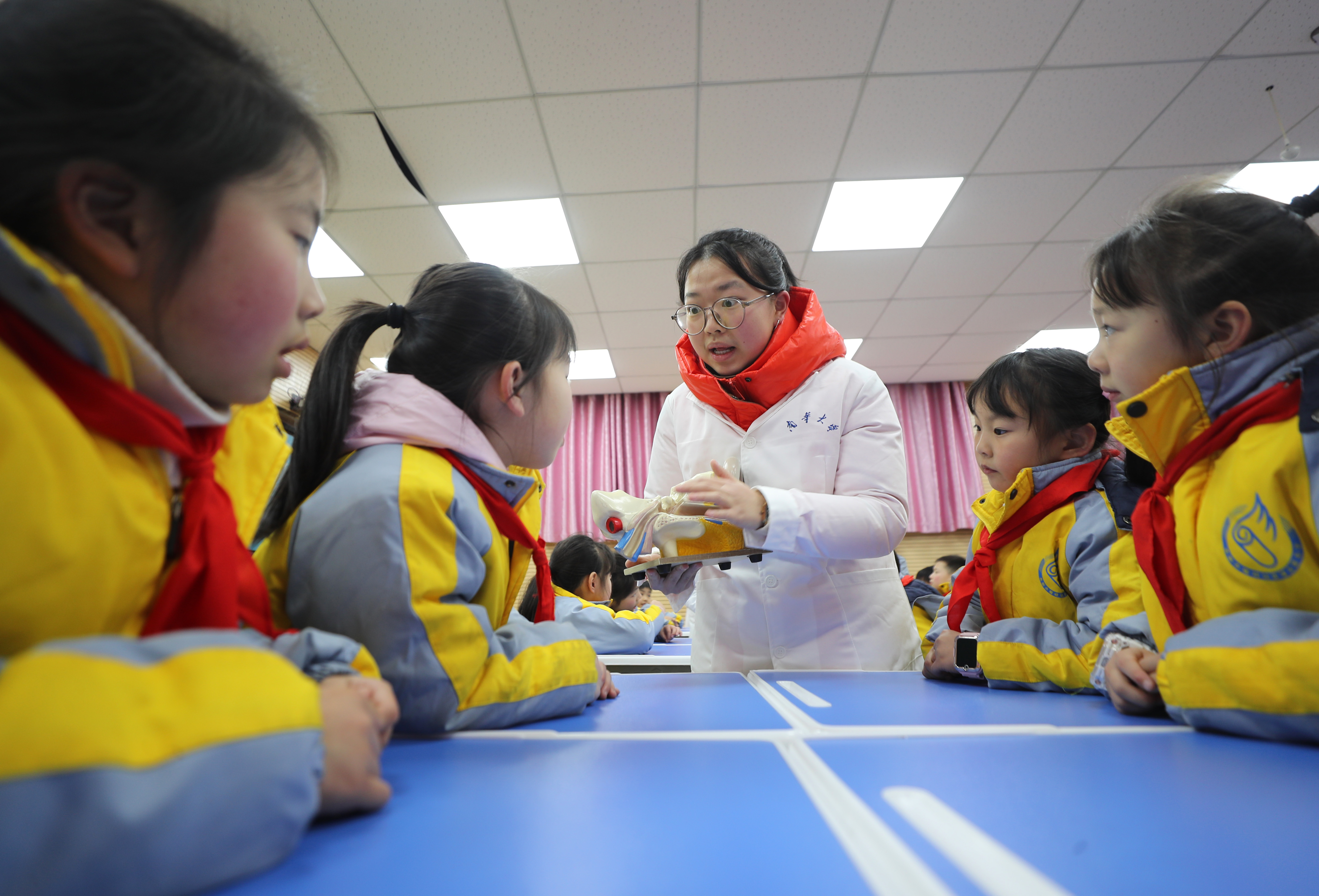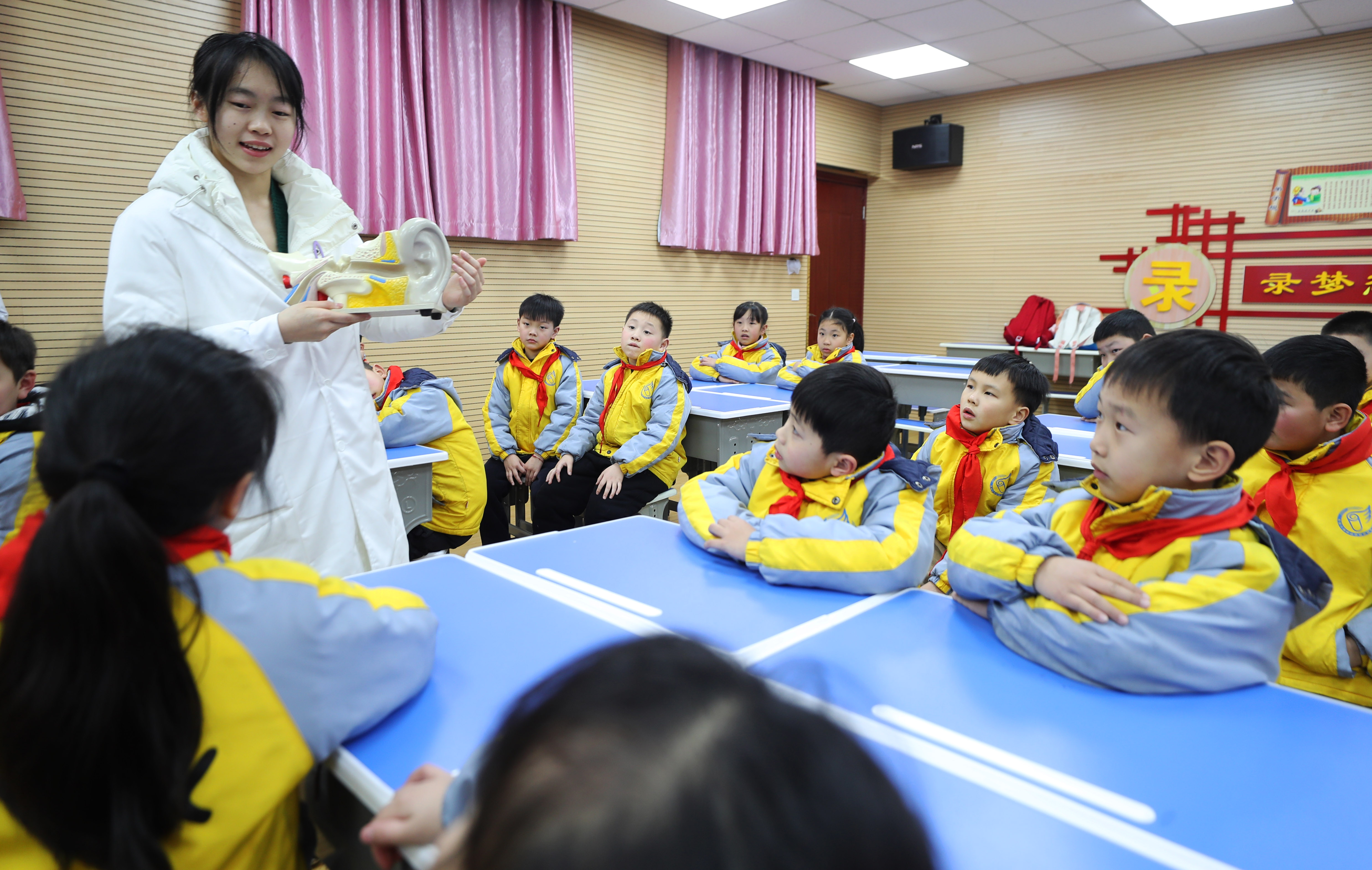 志愿者在給孩子們講解愛(ài)耳護(hù)耳知識(shí)。通訊員 曹正平 曠丹 攝