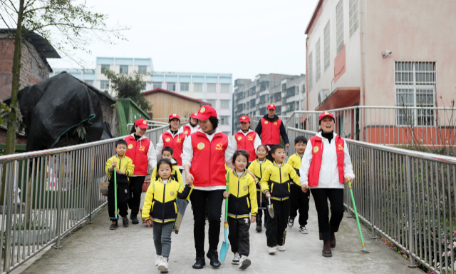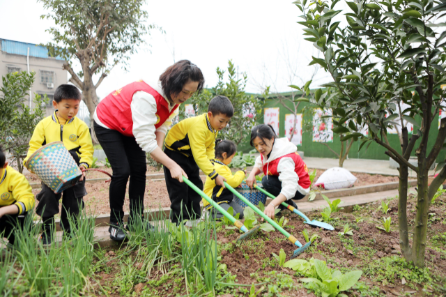 黨員教師與萌娃們帶著勞動工具去“開鋤” 陳仕川 攝