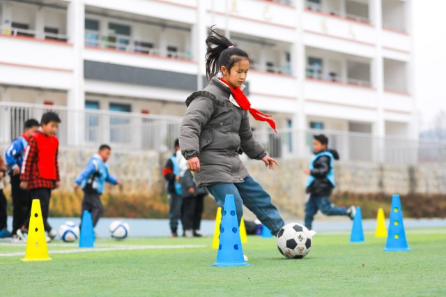 2024年3月7日,貴州省黔西市文峰街道黎明小學(xué)的足球場(chǎng)上,小學(xué)生們?cè)谶M(jìn)行足球訓(xùn)練。近年來(lái),黔西市文峰街道黎明小學(xué)十分重視校園足球運(yùn)動(dòng),將足球文化融入校園文化建設(shè),讓孩子們?cè)诰G茵場(chǎng)上感受足球魅力,享受運(yùn)動(dòng)的快樂。(中國(guó)教育報(bào)-中國(guó)教育新聞網(wǎng) 通訊員 周訓(xùn)超 攝)
