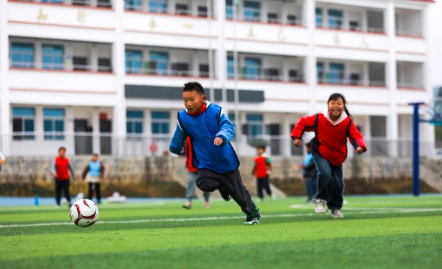 小學(xué)生們?cè)谶M(jìn)行足球比賽 周訓(xùn)超 攝
