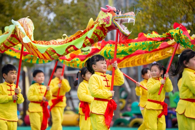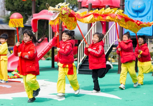 二月二,龍?zhí)ь^。3月11日,江蘇省海安高新區(qū)海南幼兒園的孩子們通過舞祥龍、賽龍舟,吃龍食,剃喜頭等一系列民俗活動(dòng),感受熱鬧的節(jié)日氛圍,體驗(yàn)傳統(tǒng)文化的快樂。中國教育報(bào)-中國教育新聞網(wǎng)通訊員 翟慧勇 攝