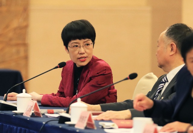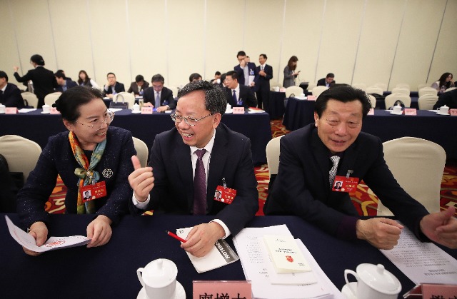3月10日上午,山東省代表團(tuán)全體會(huì)議期間,全國(guó)人大代表、山東聊城市實(shí)驗(yàn)中學(xué)副校長(zhǎng)竇延麗(左)、全國(guó)人大代表,山東鄆城縣宋江武校校長(zhǎng)樊慶斌(右)與代表交流討論。