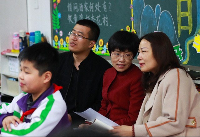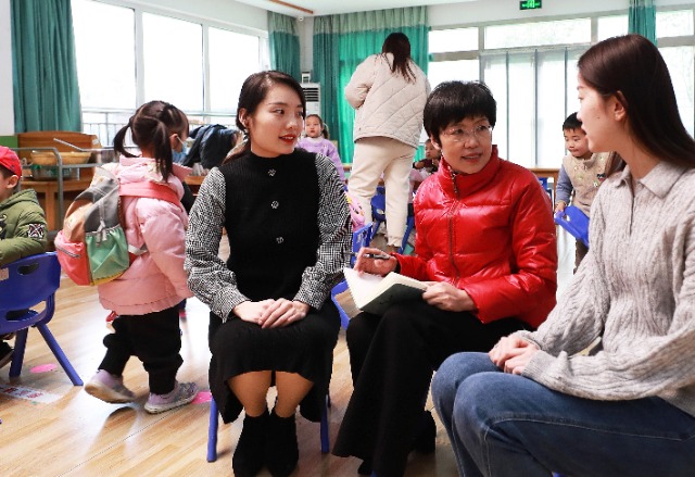 2023年2月21日,全國人大代表、山東省臨沂市北城小學(xué)黨總支張淑琴(右二)到幼兒園調(diào)研學(xué)前教育。