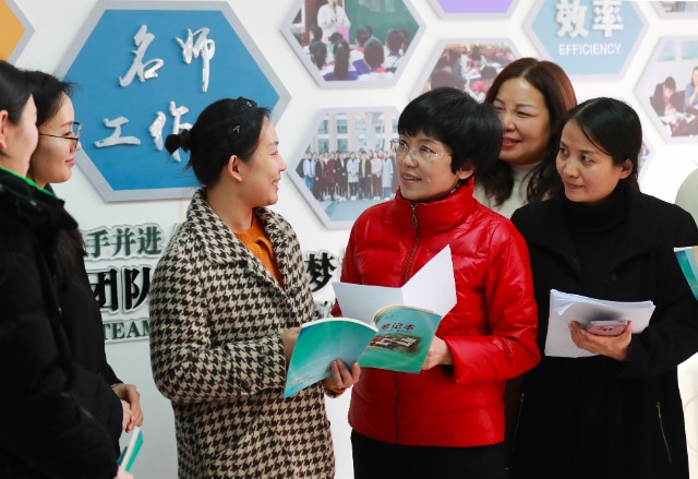2023年2月21日,臨沂市北城小學(xué)名師工作坊,張淑琴(右三)與同事進行教學(xué)研討。