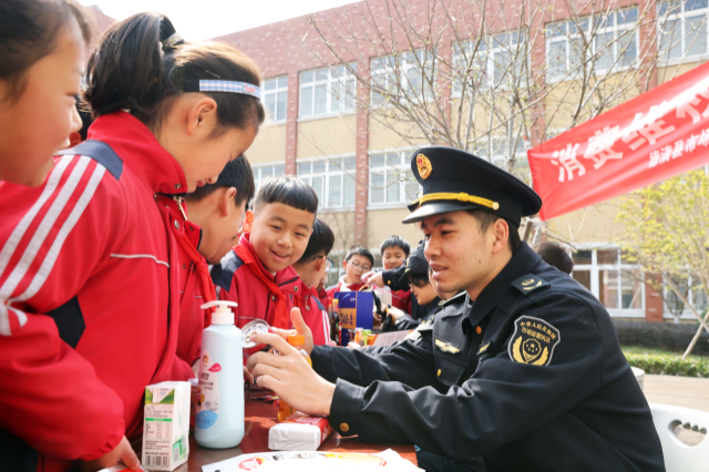市場監(jiān)管執(zhí)法人員向孩子們傳授如何正確消費及消費維權(quán)。通訊員 倪立芳 林丹 攝