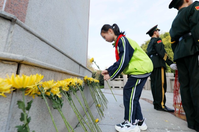 江西省吉安市第八中學(xué)學(xué)生在白鷺洲公園向烈士紀(jì)念碑獻(xiàn)花 通訊員 李軍 攝