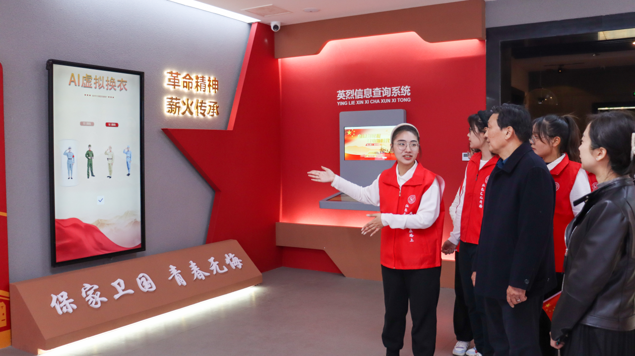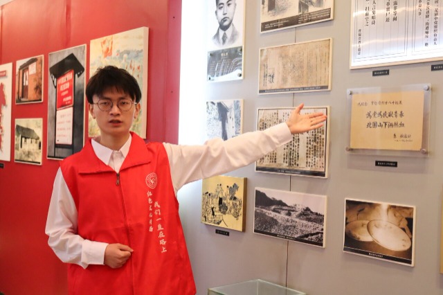 揚(yáng)州大學(xué)紅色講解團(tuán)志愿者正在講解 吳浩 王千尋 攝