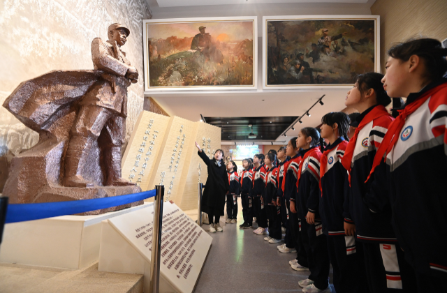 學(xué)生在晉冀魯豫烈士陵園左權(quán)將軍紀(jì)念館參觀 郝群英 攝