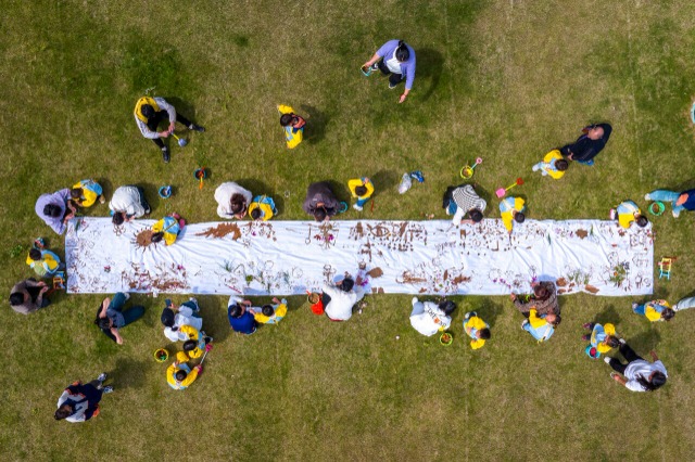 小朋友在畫卷上繪出心中美麗的春天。通訊員 肖本祥 攝