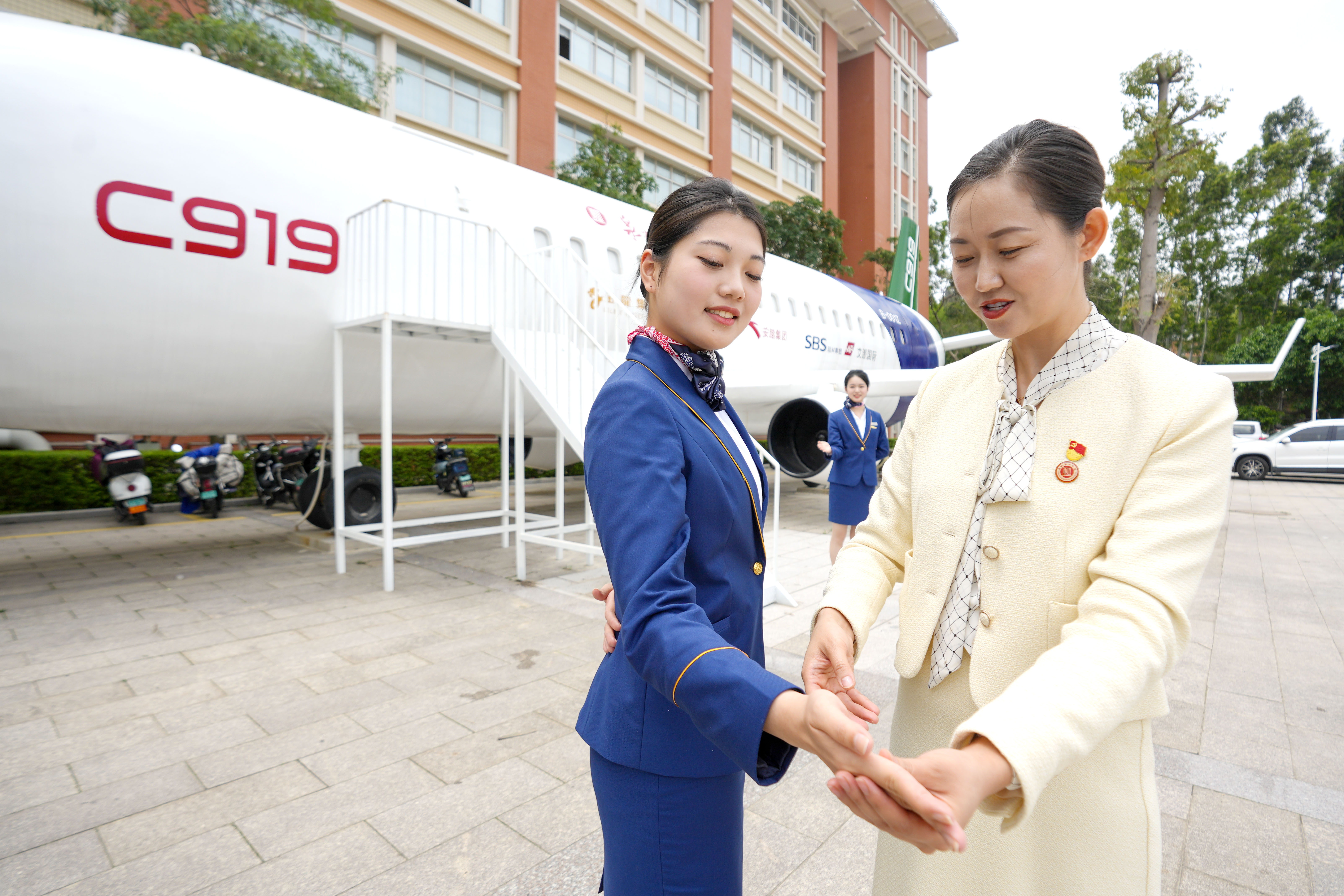 近日,福建省晉江市,泉州輕工職業(yè)學(xué)院新配置的國產(chǎn)大飛機(jī)C919同款航空模擬機(jī)艙內(nèi),空中乘務(wù)專業(yè)的學(xué)生正在進(jìn)行嚴(yán)格、細(xì)致的實操訓(xùn)練。 近年來,泉州輕工職業(yè)學(xué)院立足紡織、鞋服技術(shù)發(fā)展優(yōu)勢和海陸空區(qū)域商貿(mào)人員往來頻繁特點,大力發(fā)展職業(yè)教育,構(gòu)建校企合作一體化育人模式,實行“訂單式”辦學(xué),暢通就學(xué)與就業(yè)直通渠道,培育優(yōu)秀職業(yè)人才,促進(jìn)區(qū)域經(jīng)濟(jì)發(fā)展。 中國教育報-中國教育新聞網(wǎng)通訊員 謝貴明 攝