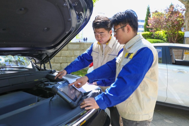 新能源汽車技術專業(yè)學生在做汽車通訊線路測試。中國教育報-中國教育新聞網記者 單藝偉 攝