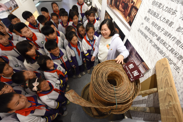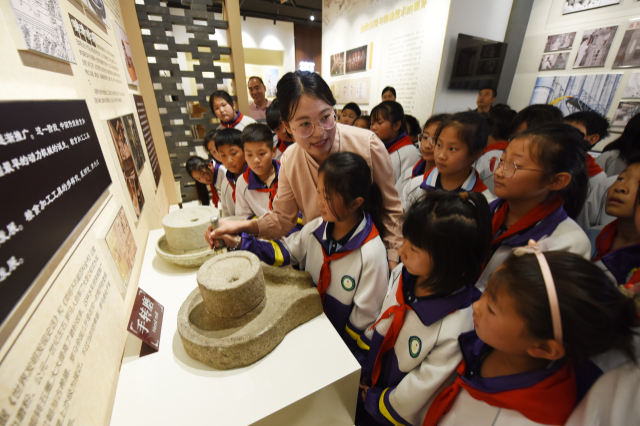 5月16日,山東省臨沂市郯城縣馬頭鎮(zhèn)中心小學學生走進“魯南糧食博物館”,上了一堂別開生面的“節(jié)糧課”。同學們在老師的帶領下參觀學習農(nóng)耕文化知識,體驗農(nóng)具的使用方法,培育節(jié)約糧食、愛惜糧食的良好習慣,共同迎接5月18日國際博物館日到來。中國教育報-中國教育新聞網(wǎng)通訊員 房德華 攝