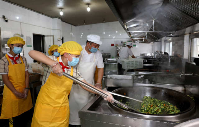 廚師教學(xué)生擇菜 通訊員 吉喆 攝
