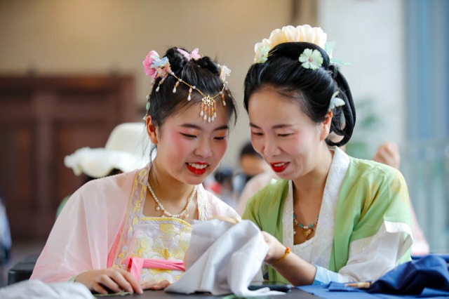 5月18日,適逢國際博物館日,一場主題為“古藝傳承 布繡繁華”的手工刺繡活動正在福建省福清市博物館內(nèi)舉行,不少家長帶著孩子前來學(xué)習(xí)國家級非物質(zhì)文化遺產(chǎn)項(xiàng)目廣繡技藝,感受非遺獨(dú)特魅力。中國教育報-中國教育新聞網(wǎng)通訊員 謝貴明 攝